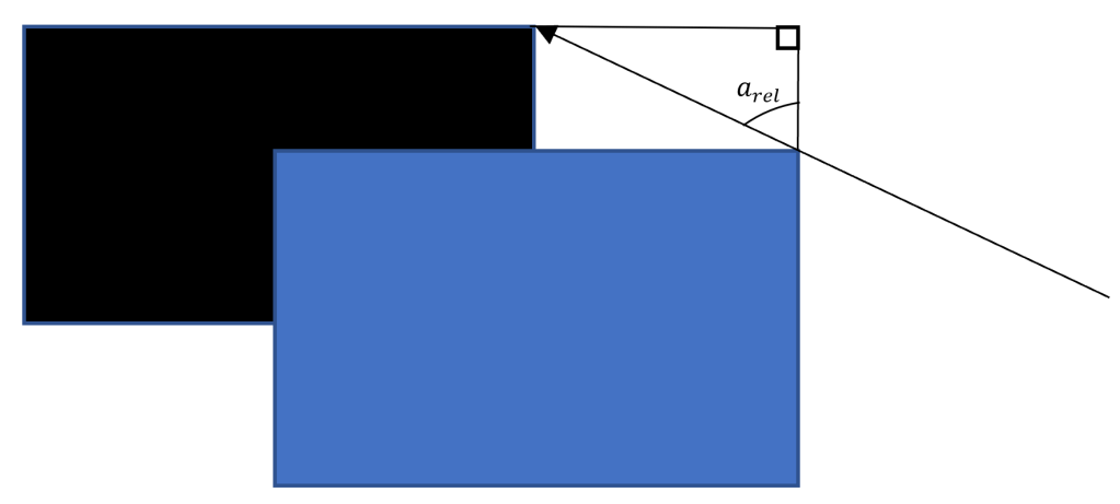 Where the actual displacement is found by L*tan(arel), where L is the distance between corresponding points calculated earlier and arel is the relative azimuth.